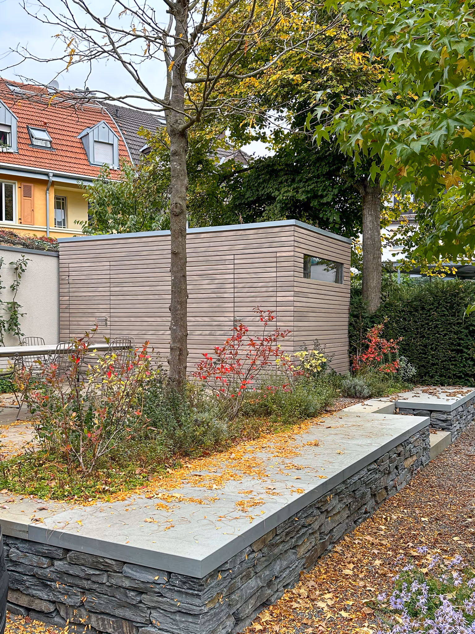 Durch passende Fassadenmaterialien, Dachbegrünung, Glasflächen oder integrierte Geräteraum-Lösungen fügt sich eine Sauna harmonisch in die Gartengestaltung ein.
